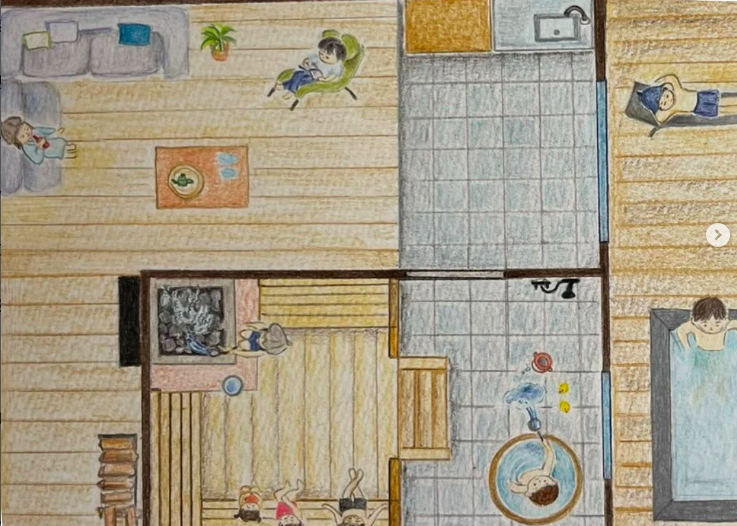 サウナ、水風呂、休息が一直線に完結する導線。